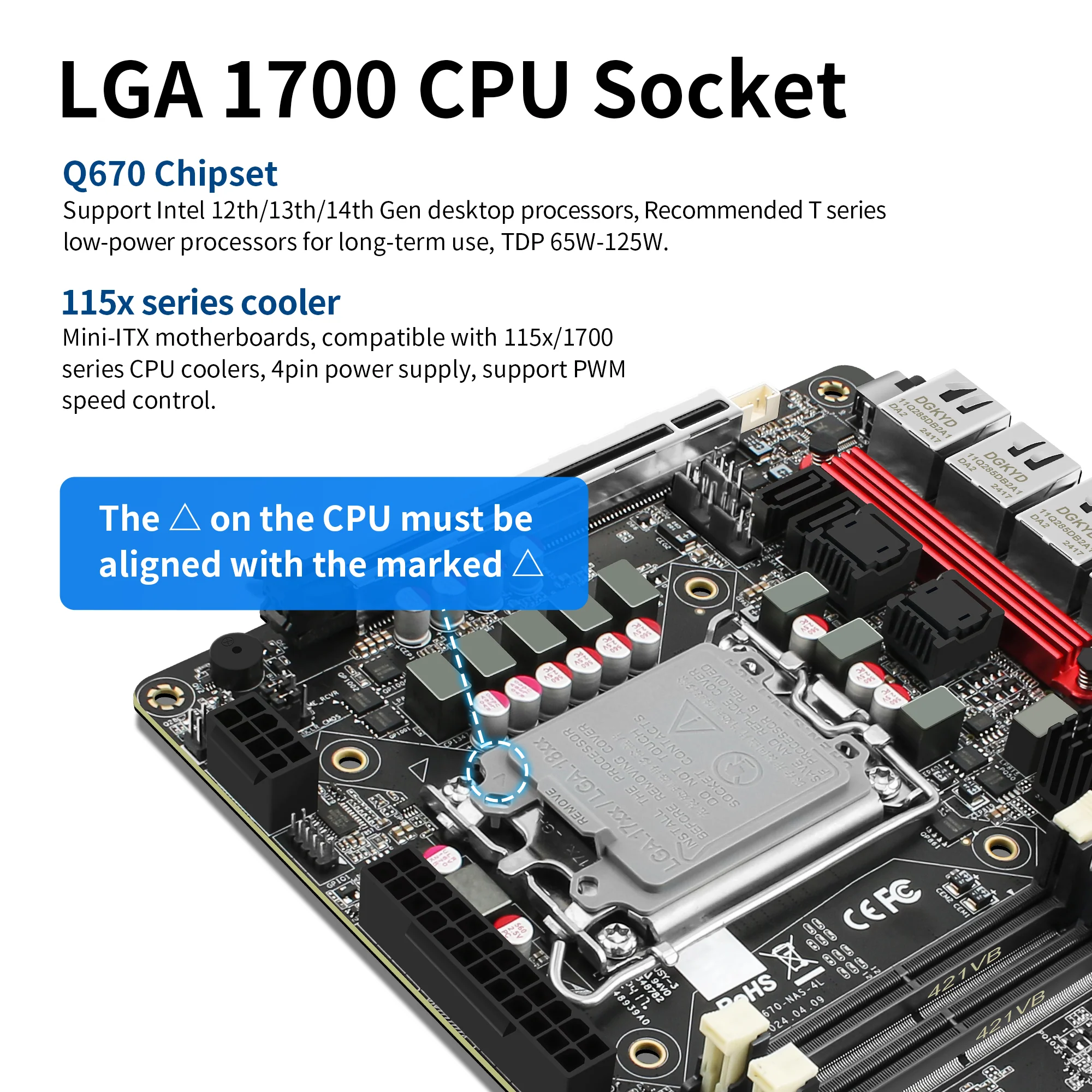 CPU: Default without CPU, the Q670 Chipset supports LGA 1700 CPU.